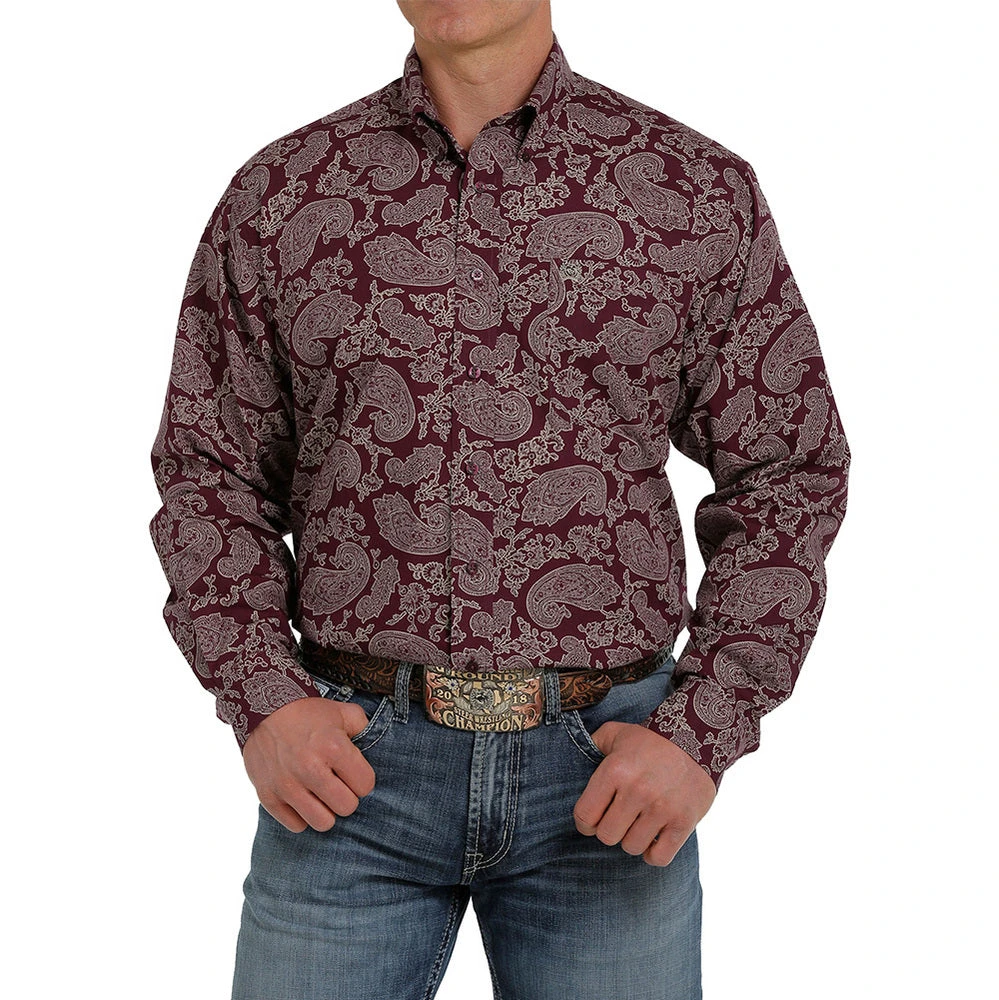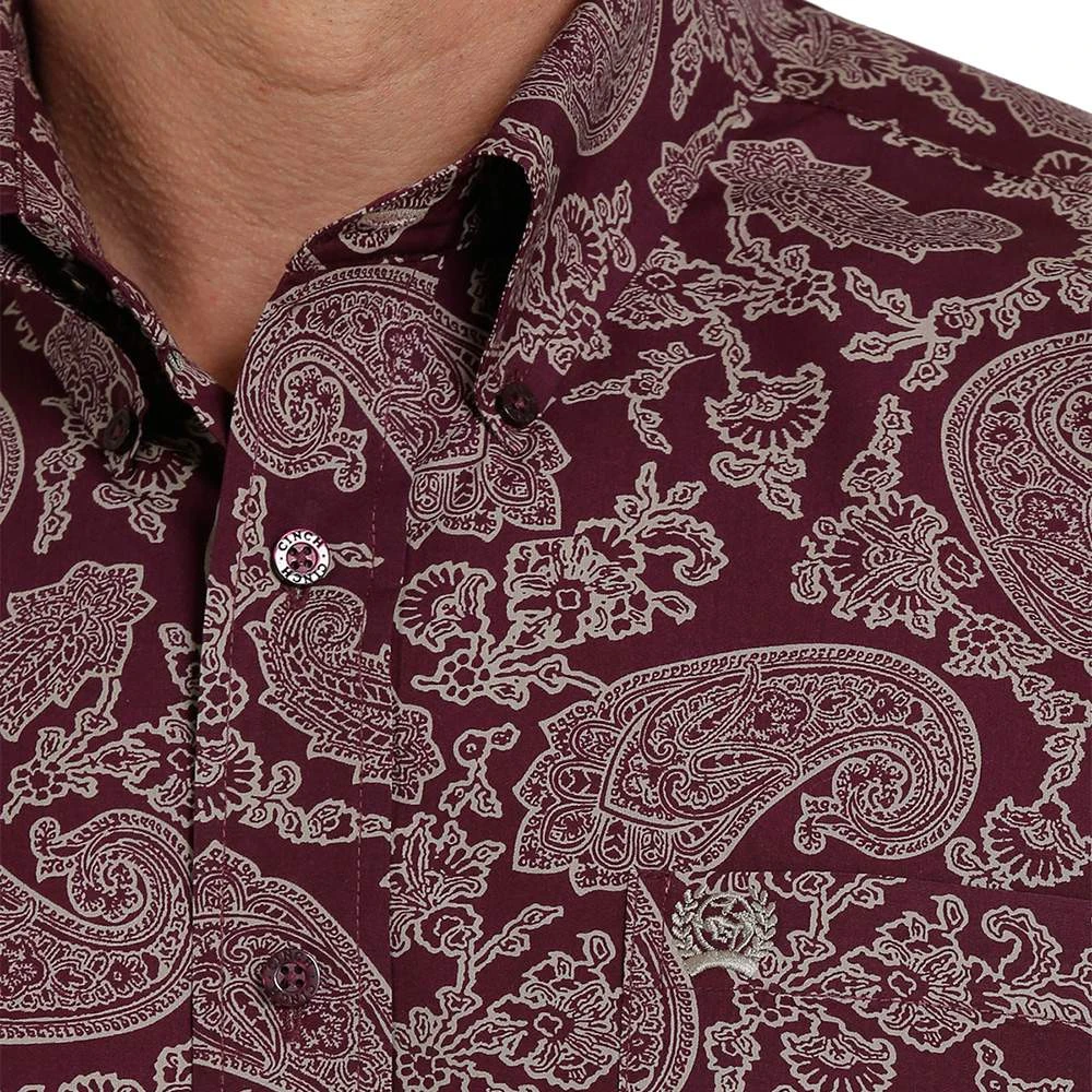 Go for a stylish look wearing our purple paisley buttondown by Cinch.