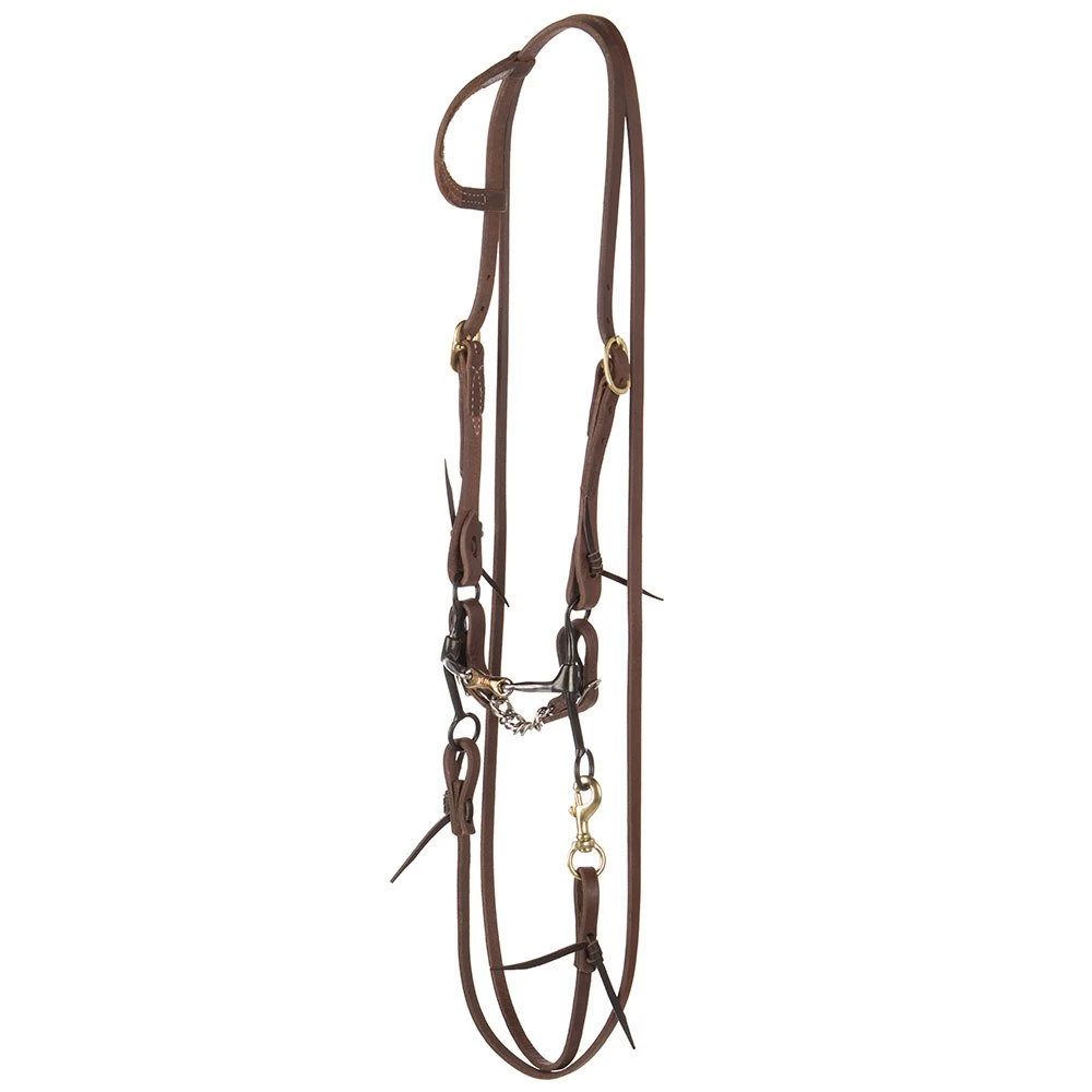 - The oiled harness leather headstall comes equipped with a slide ear, solid brass hardware and a stitched brow piece for extra durability. Riding with a browband promotes balance by applying the same amount of pressure on either side of the horse’s poll versus a split ear.