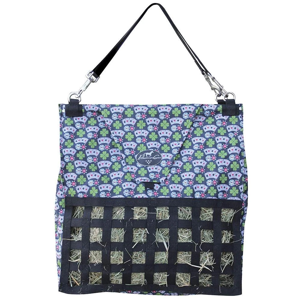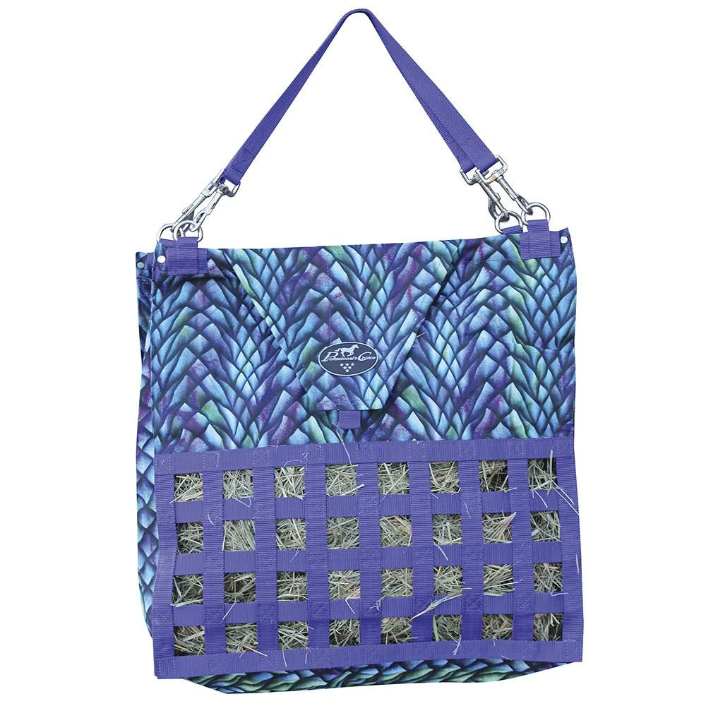 This Professional’s Choice Slow Feed Hay Bag is great for encouraging horses to eat more slowly and keeping them busy when tied to the trailer. This durable hay bag loads from the top and is easily hung up with two detachable straps. 21in tall x 21in wide, 9in wide, 1-1/2in square webbing.
