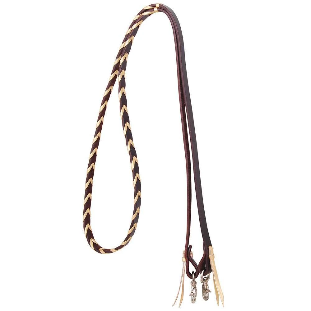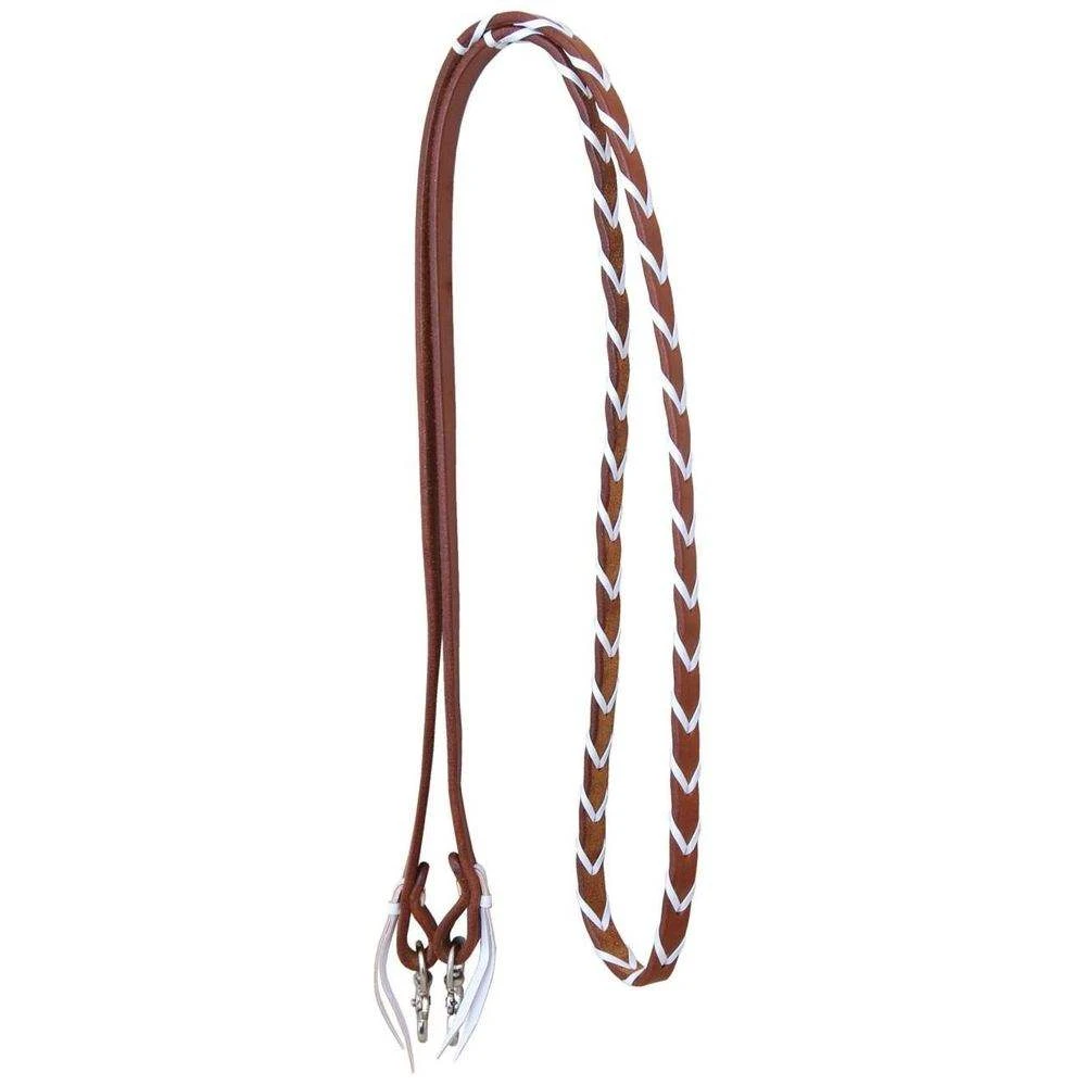 These reins are all laced with solid color leather, color options to choose from are brown, turquoise, purple and metallic silver.