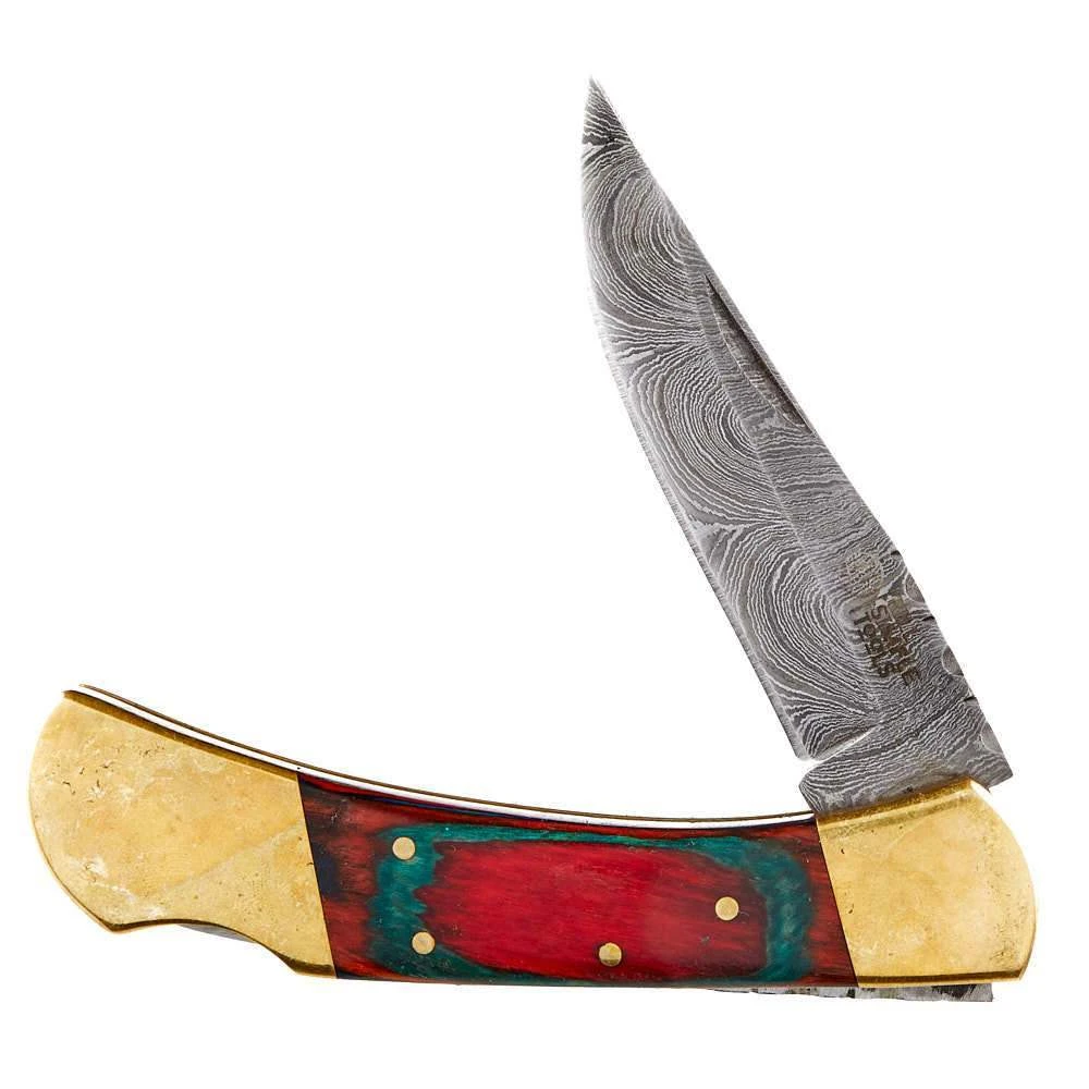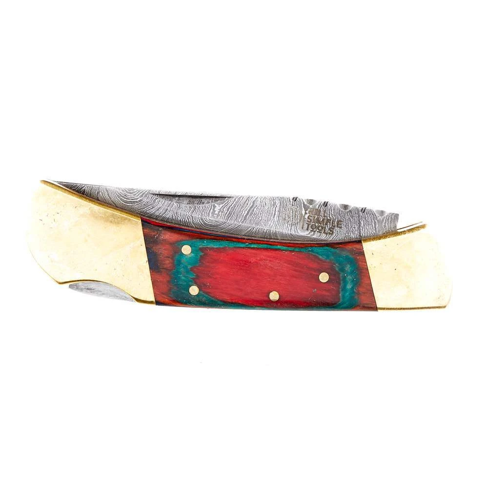 Take the right tools with you on your next adventure. Having the right gear, means having gear that does not fail. This brand of tool is for the American spirited adventurer! This is a folding clip point damascus blade knife made in Kemah, Texas, USA. This Bone Daddy Skinner Damascus clip point model is super sharp, it is made of damascus steel with a hardness of 1095 58; it is a liner lockback folding blade with a wood handle and pocket clip. This travel gear is great for hunting, fishing, camping or, as needed. Rill Simple Tools are manufactures of high quality outdoor tools and travel accessories. 022
