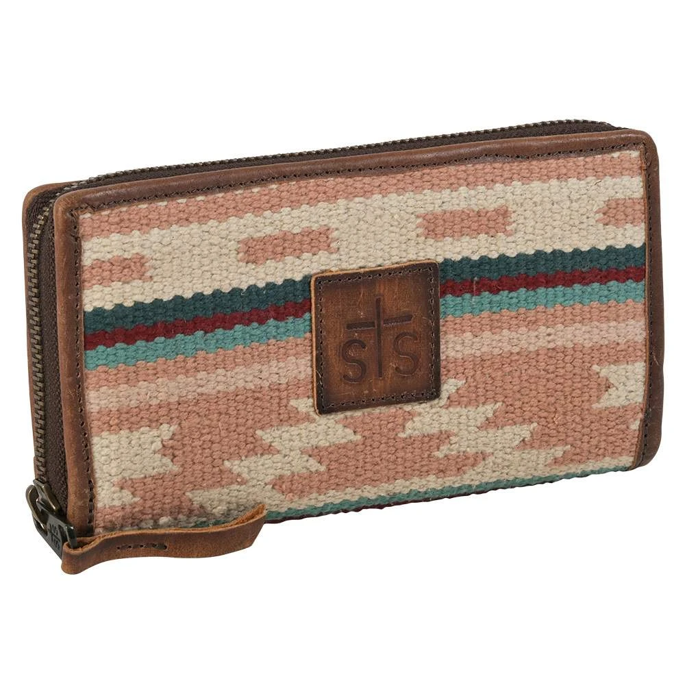 The Palomino Bifold wallet features Aztec woven serape with genuine leather accents for a touch of Western flair.