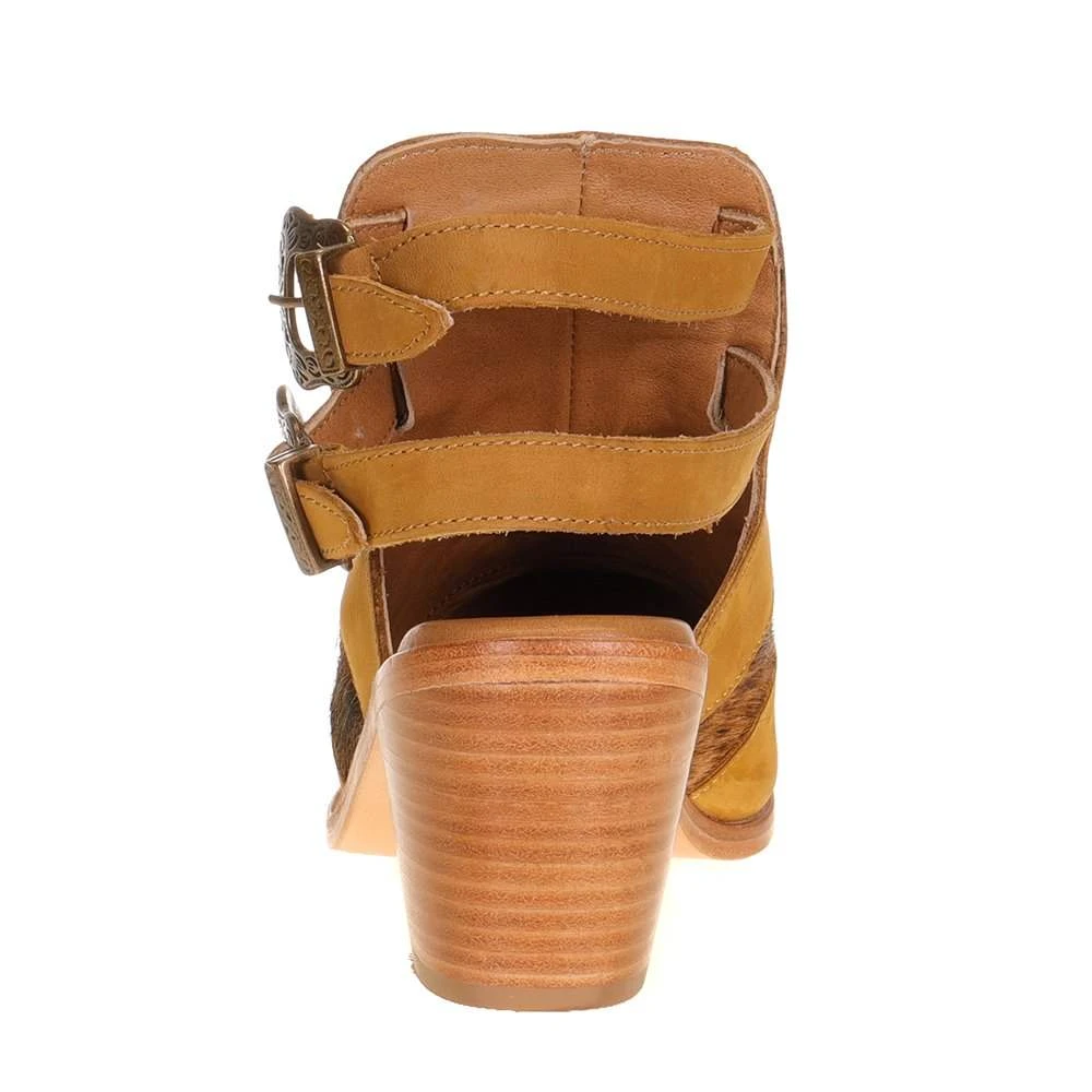 These booties are a mlust have. The brindle hide mixed with mustard suede leather make for a pair that will turn heads. Pair these with some skinnies or shorts or even a pair of bells. They will finish off any outfit perfectly.Â