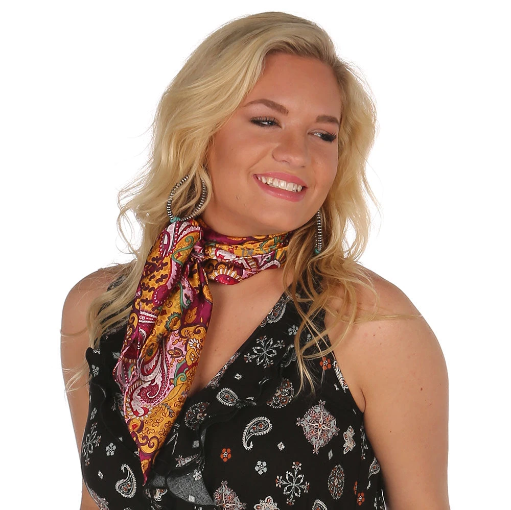 Add style to any outfit with this Paisley, Lemon Berry/Raspberry Yellow Wild Rag.